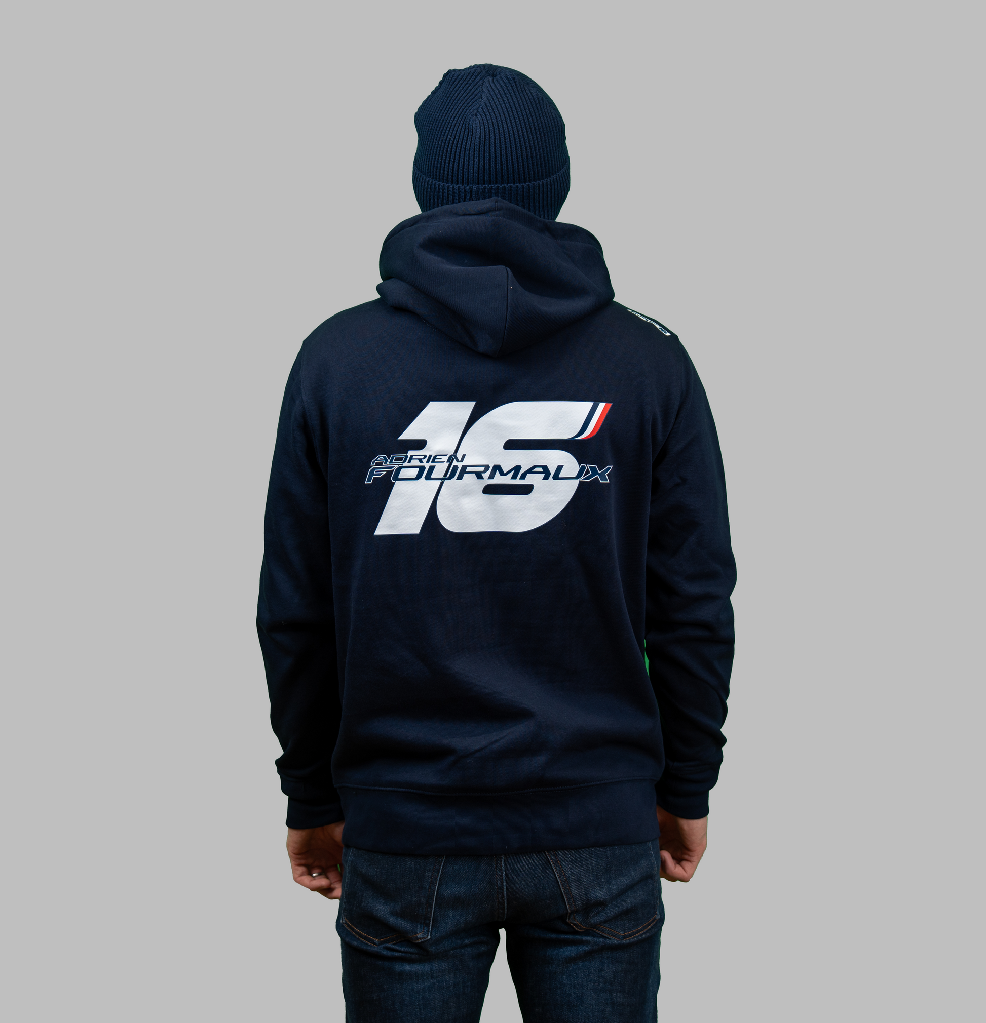 Le hoodie incontournable ! Bleu marine pur avec logo AF16 brodé et une impression au dos